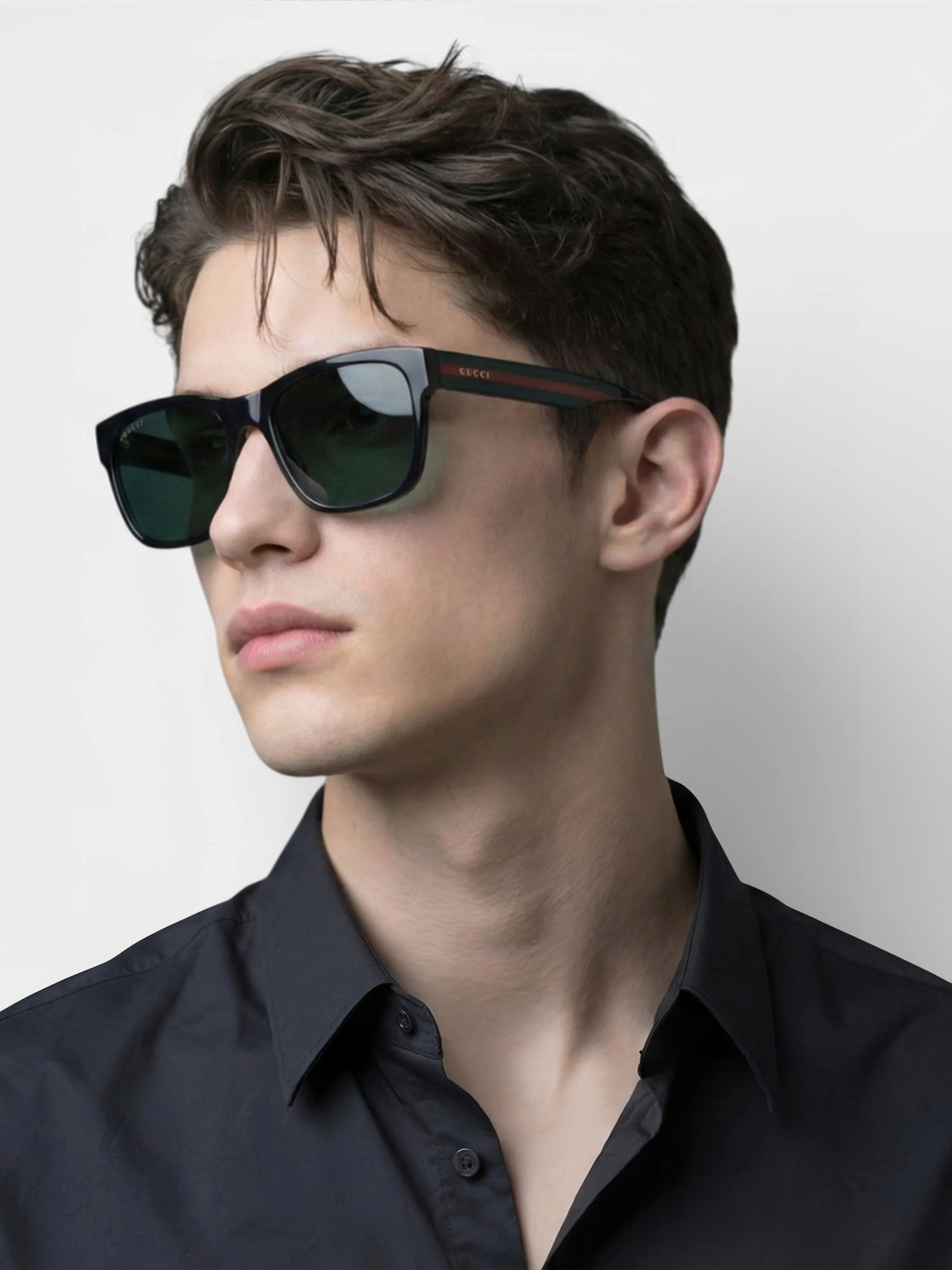 The Gucci GG0340S introduces a modern, slightly oversized hexagonal/square silhouette defined by its commanding flat top line and generous, unisex fit. Designed to deliver an instantly recognizable, fashion-forward, and luxurious presence, this frame is a favorite among trendsetters.